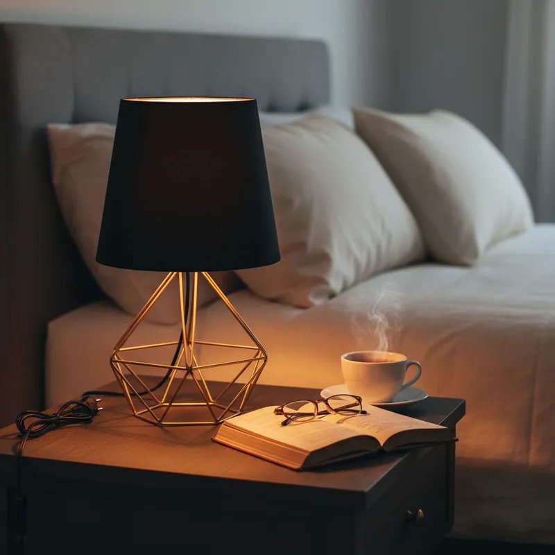 A Luminária de Mesa Diamante Aramado Bivolt une design moderno e iluminação aconchegante para quartos e escritórios. Com base metálica resistente e soquete padrão E27, ela é uma peça versátil para a sua decoração.