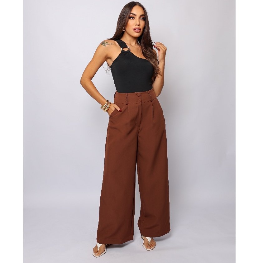 A calça pantalona alfaiataria cintura alta é a peça-chave que une elegância e conforto para a sua rotina. Com modelagem de perna larga e caimento perfeitamente estruturado, ela é versátil para transitar entre visuais sociais sofisticados e looks casuais modernos.